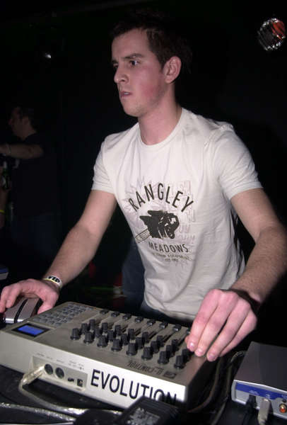 After Chris came Dave Robertson, probably better known to most on this site as one half of the Testube Babies. Dave is also a talented producer in other genres and the next hour was a showcase of his production skills at a lower BPM through a live PA. Armed with a laptop, Ableton 5, an Evolution U Control UC-33 Midi controller and an M-audio soundcard, Dave set about taking the crowd on a tour of his tune. A slightly different mood was created with his set. I wouldn’t say it built on the set before in terms of pace but it definitely gave the night another flavour and it’s always good to have variety. The crowd (which had filled up pretty nicely by this point) were pretty appreciative and Dave (one of the more unassuming people I’ve come across in the scene) seemed to be loving the moment in the limelight. Tunes like his remix of ‘Lullaby’ and ‘1 Dunk Wonder’ got an airing….